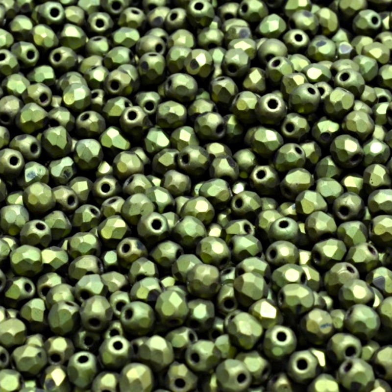 - 100pcs Czech Fire Polished Faceted Glass Beads Round 3mm Jet Green Look Matte