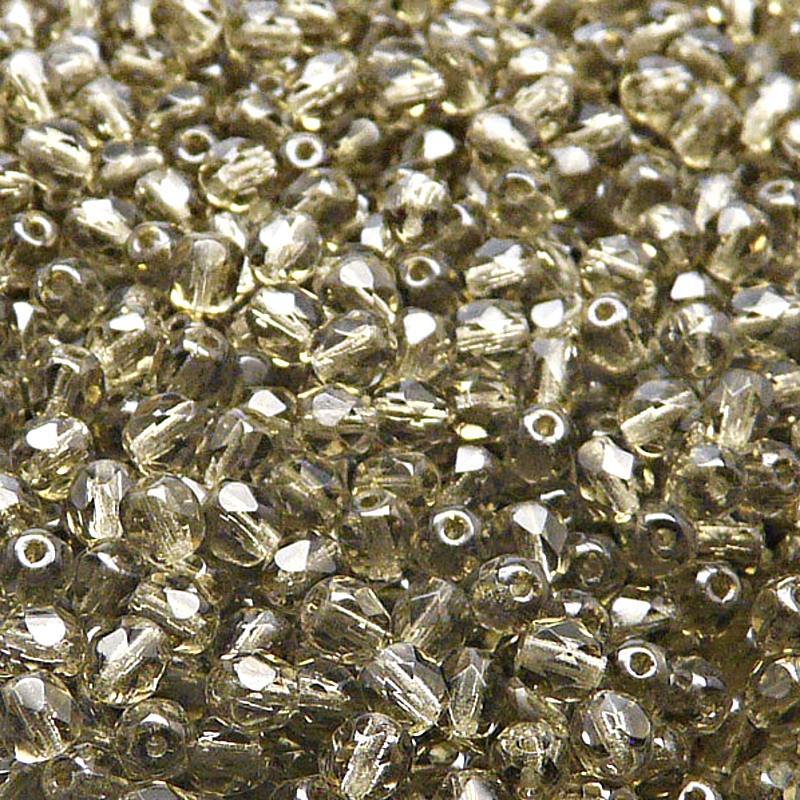 Чешские стеклянные гранёные бусины круглые 4мм серые прозрачные.