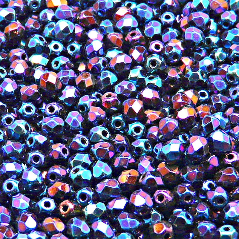 - 100pcs Czech Fire Polished Faceted Glass Beads Round 4mm Jet Blue Iris