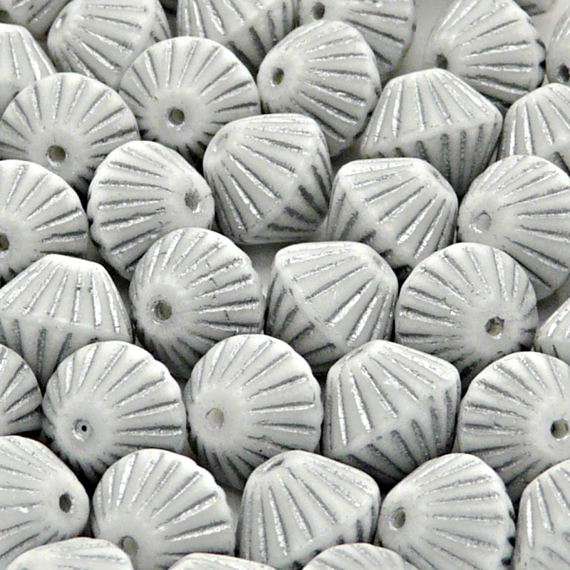 10pcs Czech Pressed Glass Bicone Round Beads 11mm Opaque Chalk White With Silver Fired Color MatteIn stock 29 qty76,00 CZK/ qty62,81 CZK VAT excluded