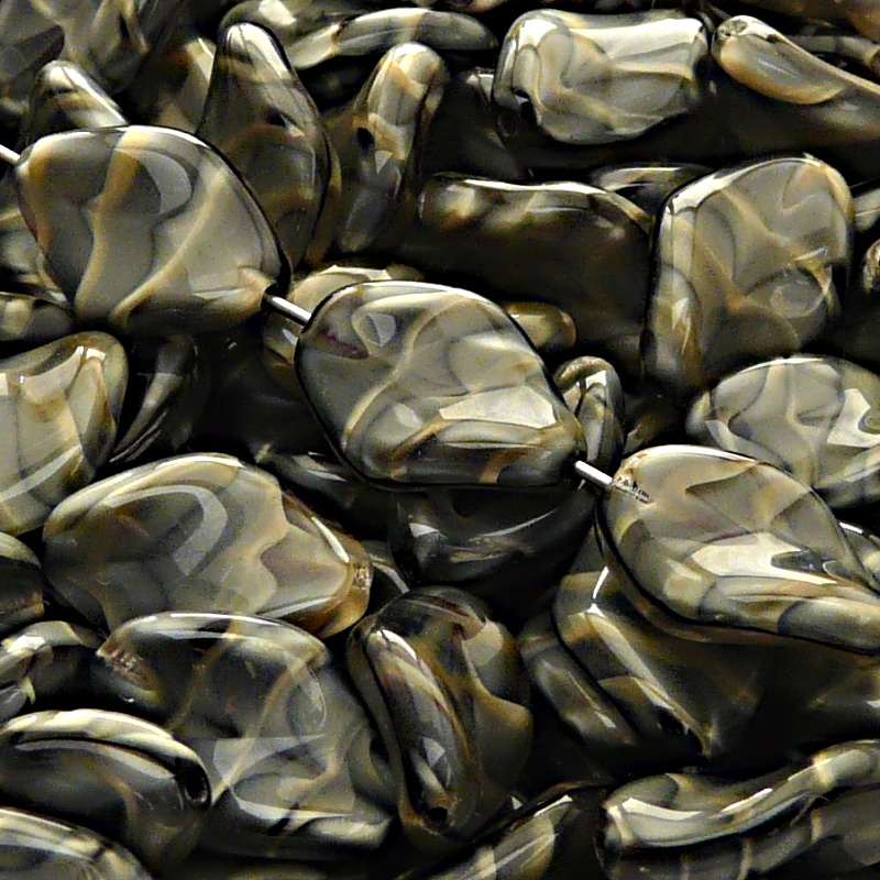 10шт Чешские стеклянные штампованные (прессованные) бусины волнушки овальные 19х13мм чёрно-бежевый полосатый лунный свет непрозрачные.