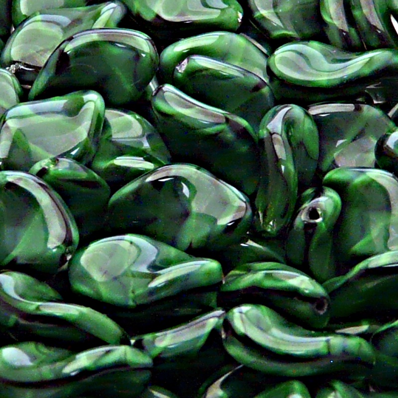 10pcs Czech Pressed Glass Ripple Twisted Flat Oval Beads 19x13mm Emerald Jet Striped Moonlight (26507)In stock 50 qty132,00 CZK/ qty109,09 CZK VAT excluded