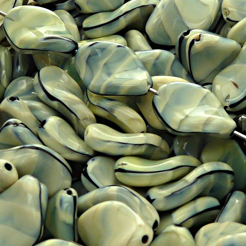 Glass Pressed Beads are one of the oldest types of beads. They are the embodiment of boundless human imagination in one of the most beautiful natural materials, traditional Bohemian glass. These were the first beads that were made here over three hundred years ago using the technique of pressing heated glass rods in a mould. Czech pressed glass beads in the shape of a heart are produced using the same technology as all czech glass pressed beads. Czech pressed glass ripple twisted flat oval beads size 19x13mm.