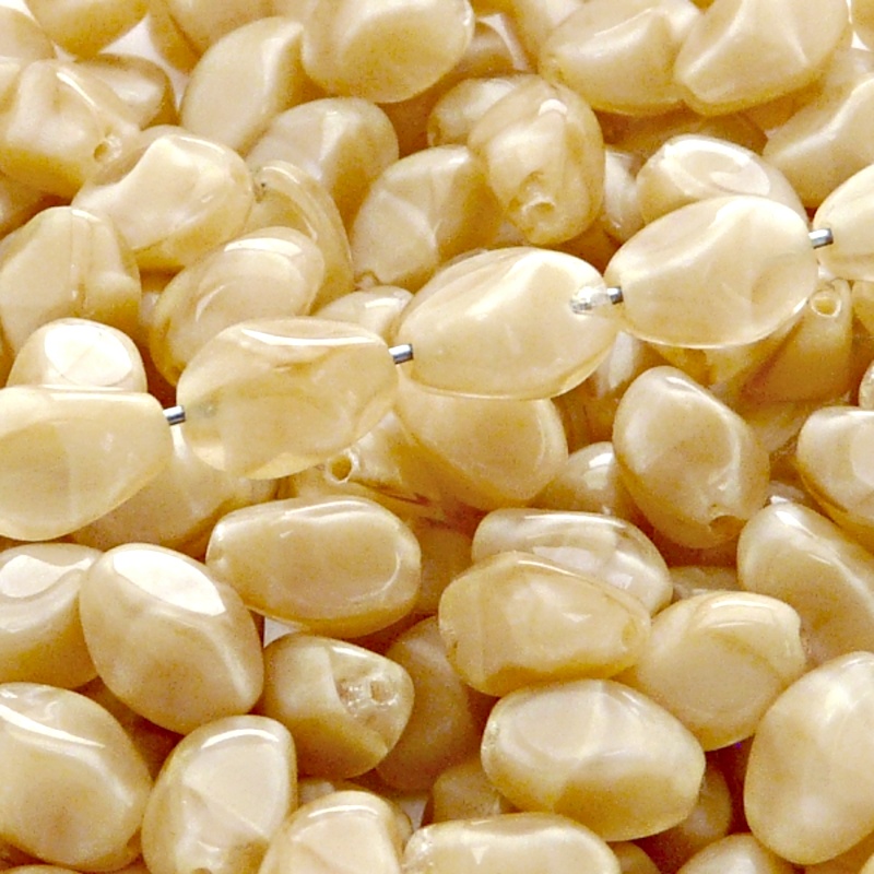 - 20pcs Czech Pressed Glass Twisted Bicone Lantern Beads 11x8mm Light Brown Striped Moonlight (16007)