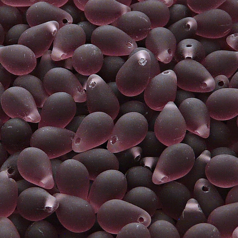 30шт Чешские стеклянные штампованные (прессованные) бусины капли 6x9мм аметист матовые прозрачные.