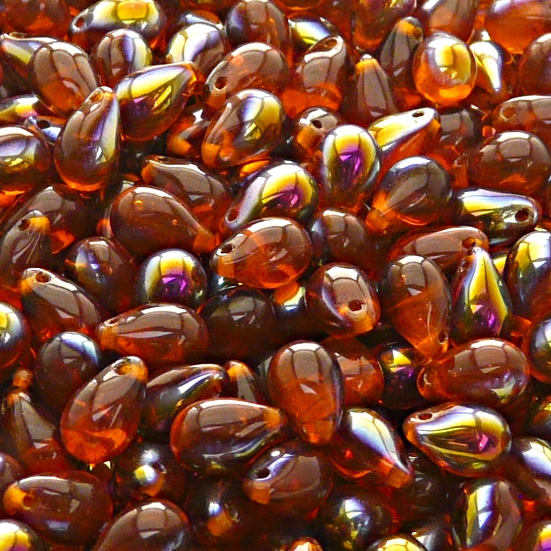 30шт Чешские стеклянные штампованные (прессованные) бусины капли 6x9мм гиацинт с покрытием сантандер полупрозрачные.