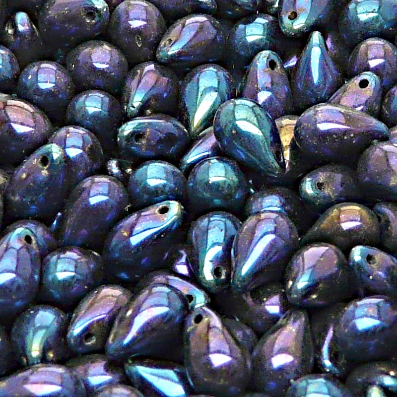 30pcs Czech Pressed Glass Teardrop Beads 6x9mm Jet Blue IrisIn stock 30 qty58,00 CZK/ qty47,93 CZK VAT excluded