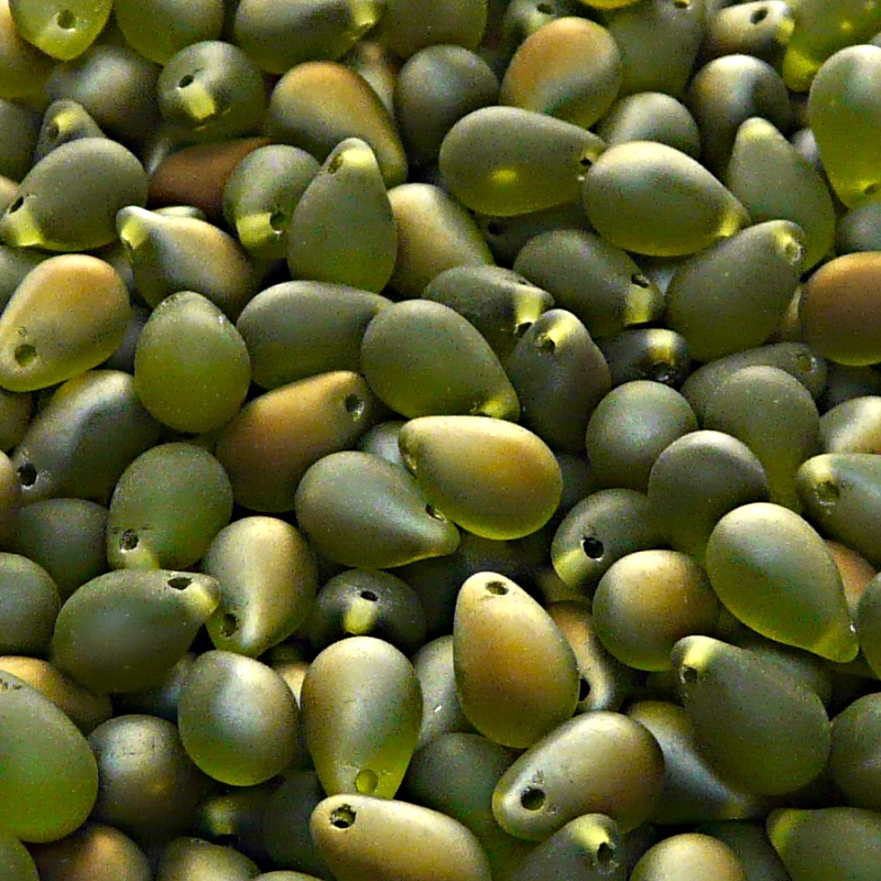 30шт Чешские стеклянные штампованные (прессованные) бусины капли 6x9мм оливин с покрытием валентинит матовые полупрозрачные.