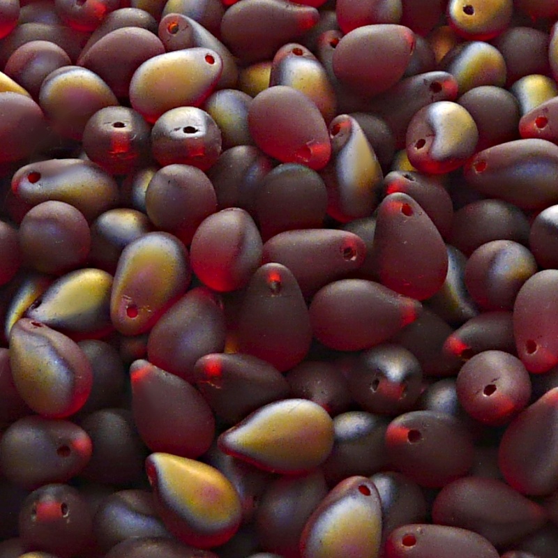 30pcs Czech Pressed Glass Teardrop Beads 6x9mm Ruby Santander Matte