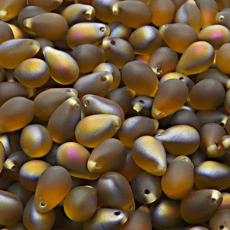 30шт Чешские стеклянные штампованные (прессованные) бусины капли 6x9мм топаз с покрытием сантандер матовые непрозрачные.
