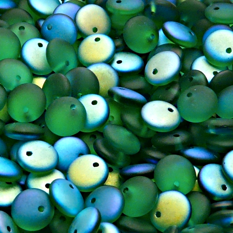 - 40pcs Czech Pressed Glass Lentil Beads 8mm Emerald AB Matte
