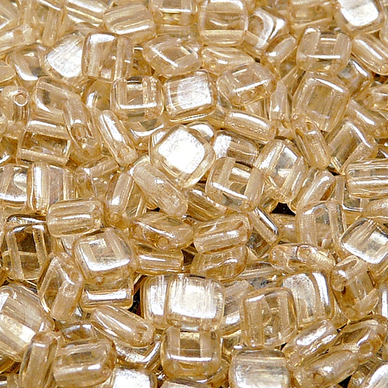 40шт Чешские стеклянные штампованные (прессованные) бусины двухдырчатые квадраты Тила 6мм хрусталь с покрытием шампань глянец полупрозрачные.