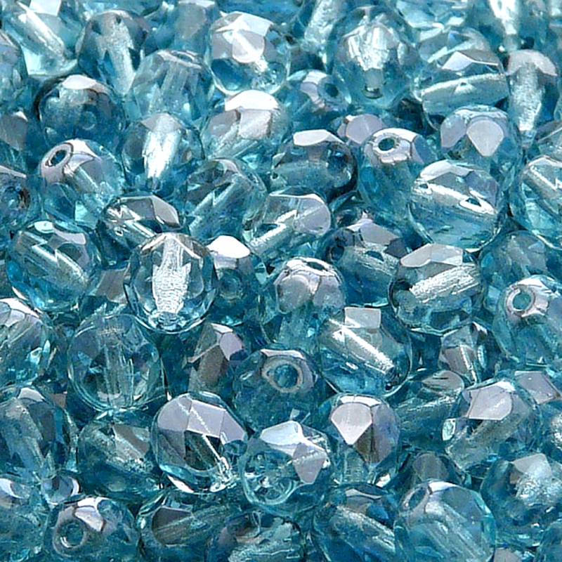 - 50pcs Czech Fire Polished Faceted Glass Beads Round 6mm Light Aquamarine Lagoon
