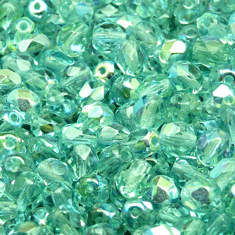 - 50pcs Czech Fire Polished Faceted Glass Beads Round 6mm Light Green Aquamarine AB