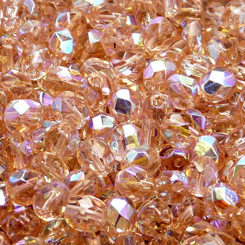 50pcs Czech Fire Polished Faceted Glass Beads Round 6mm Rosaline AB