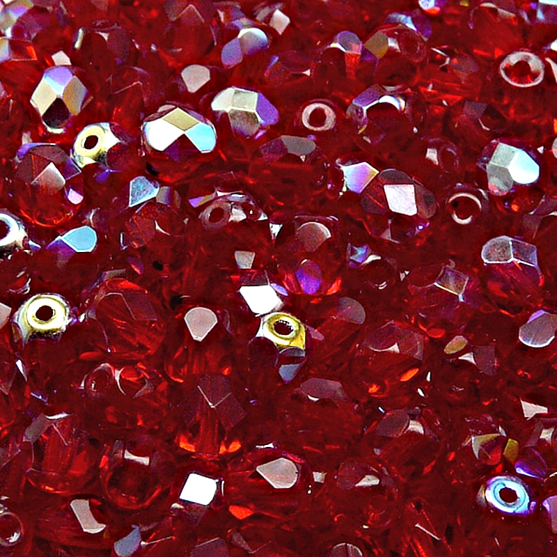 - 50pcs Czech Fire Polished Faceted Glass Beads Round 6mm Ruby AB
