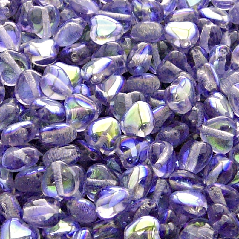 - 50pcs Czech Pressed Glass Heart Beads 6mm Tanzanite AB