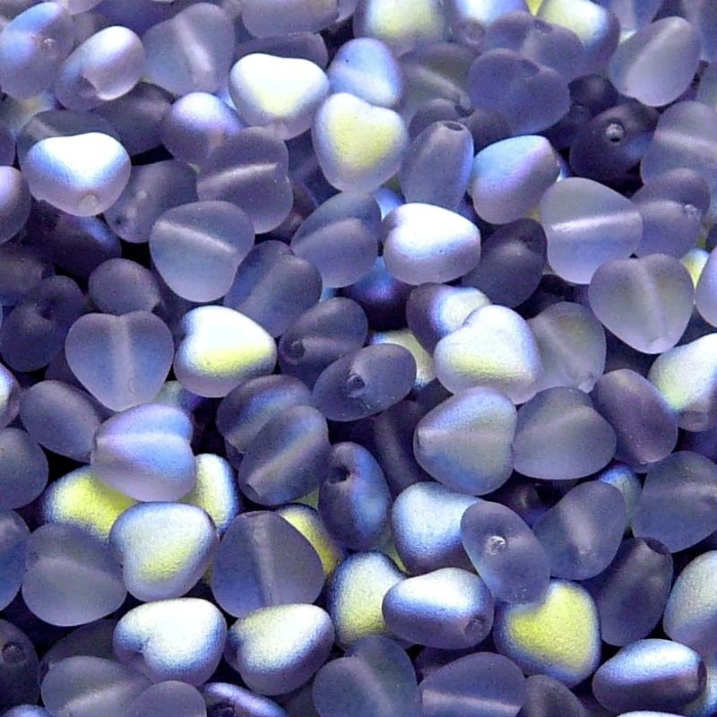 3. 50pcs Czech Pressed Glass Heart Beads 6mm Tanzanite AB Matte