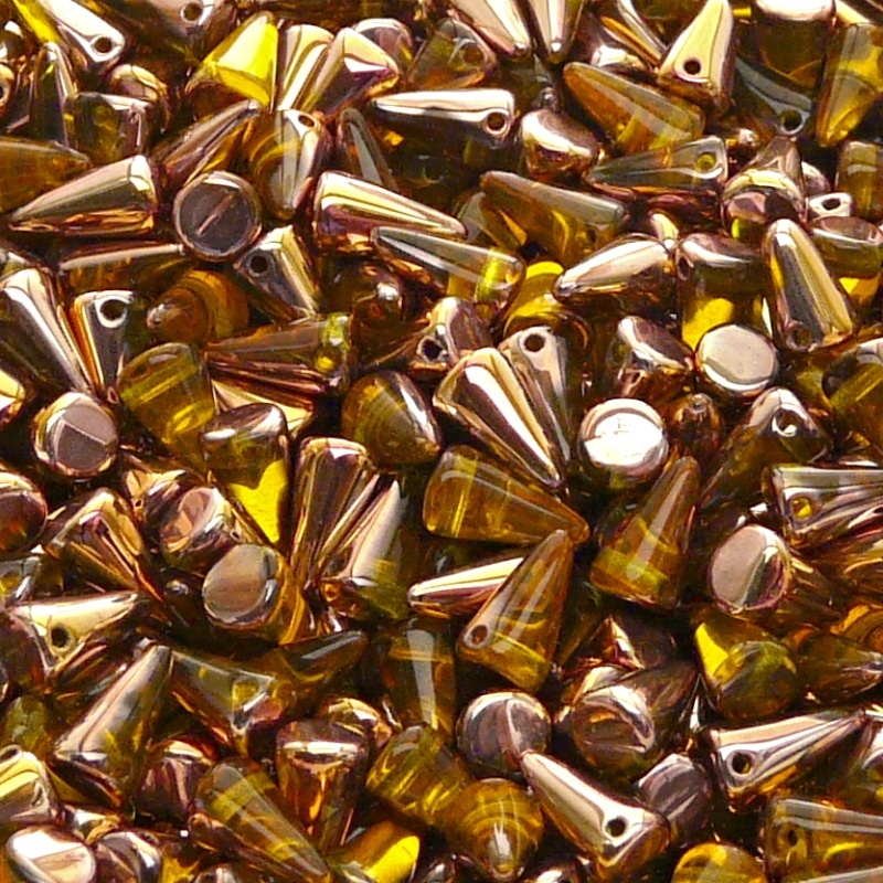 Glass Pressed Beads are one of the oldest types of beads. They are the embodiment of boundless human imagination in one of the most beautiful natural materials, traditional Bohemian glass. These were the first beads that were made here over three hundred years ago using the technique of pressing heated glass rods in a mould. Czech pressed beads in the shape of a spike are produced using the same technology as all czech glass pressed beads. Their shape is therefore reminiscent of a spike. Size 5x8mm.