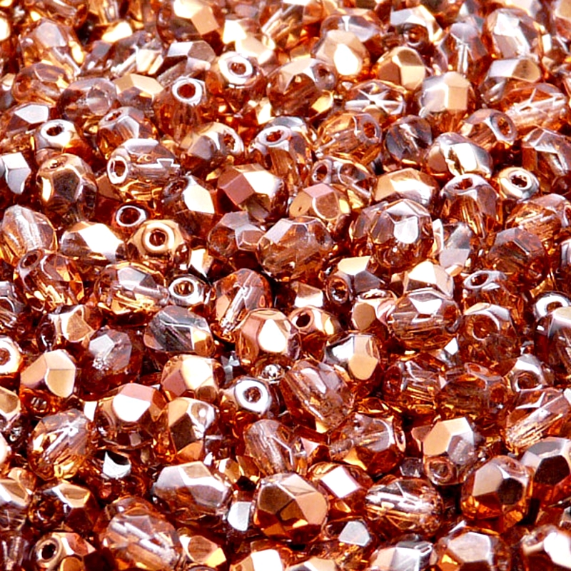 Чешские стеклянные гранёные бусины круглые 5мм розалин с покрытием сан сет полупрозрачные.