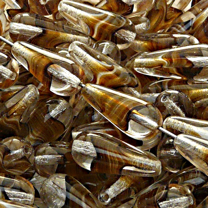 8pcs Czech Pressed Glass Drop Beads 20x9mm Crystal With Brown White Stripes InsideIn stock 39 qty92,00 CZK/ qty76,03 CZK VAT excluded