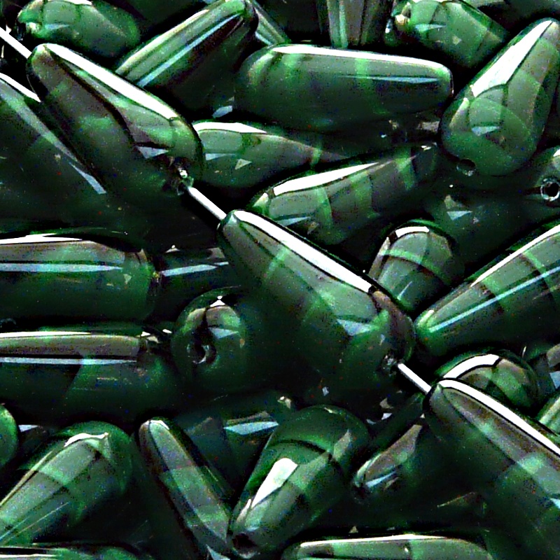 8pcs Czech Pressed Glass Drop Beads 20x9mm Emerald Jet Striped Moonlight (26507)In stock 40 qty92,00 CZK/ qty76,03 CZK VAT excluded