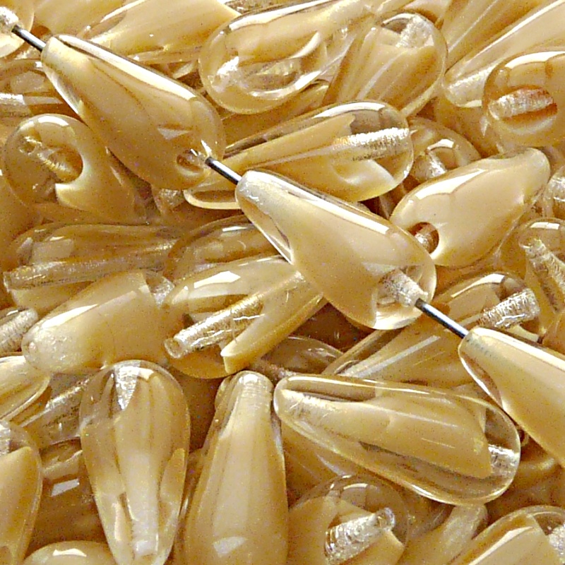 8шт Чешские стеклянные штампованные (прессованные) бусины капли 20x9мм светло-коричневый лунный свет молочные.