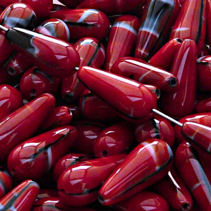 8pcs Czech Pressed Glass Drop Beads 20x9mm Red Coral Jet Striped Moonlight (26907)In stock 40 qty92,00 CZK/ qty76,03 CZK VAT excluded