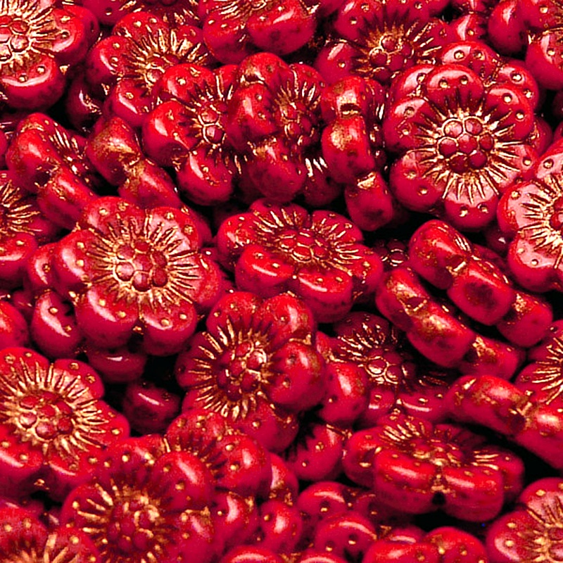 8pcs Czech Pressed Glass Flat Flower Beads 14mm Opaque Red Coral Bronze Fired ColorIn stock 20 qty68,00 CZK/ qty56,20 CZK VAT excluded