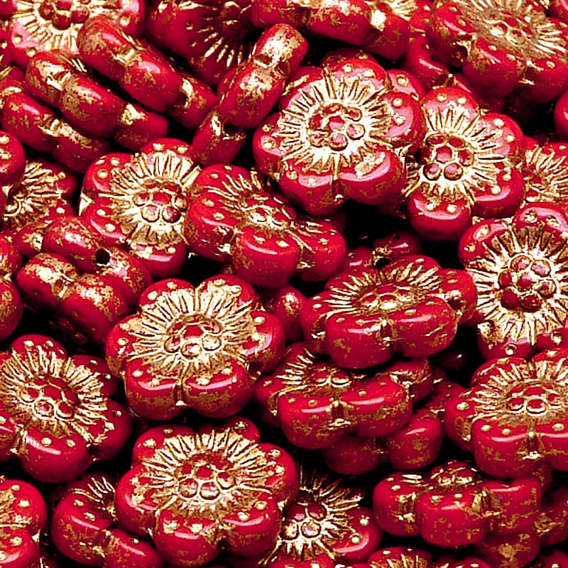 8pcs Czech Pressed Glass Flat Flower Beads 14mm Opaque Red Coral Golden Fired ColorIn stock 27 qty68,00 CZK/ qty56,20 CZK VAT excluded